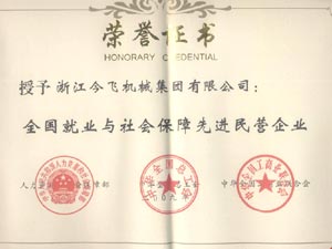 全國就業(yè)與社會保障先進民營企業(yè)證書