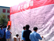 員工在祝福墻上寫下對(duì)公司的生日祝福