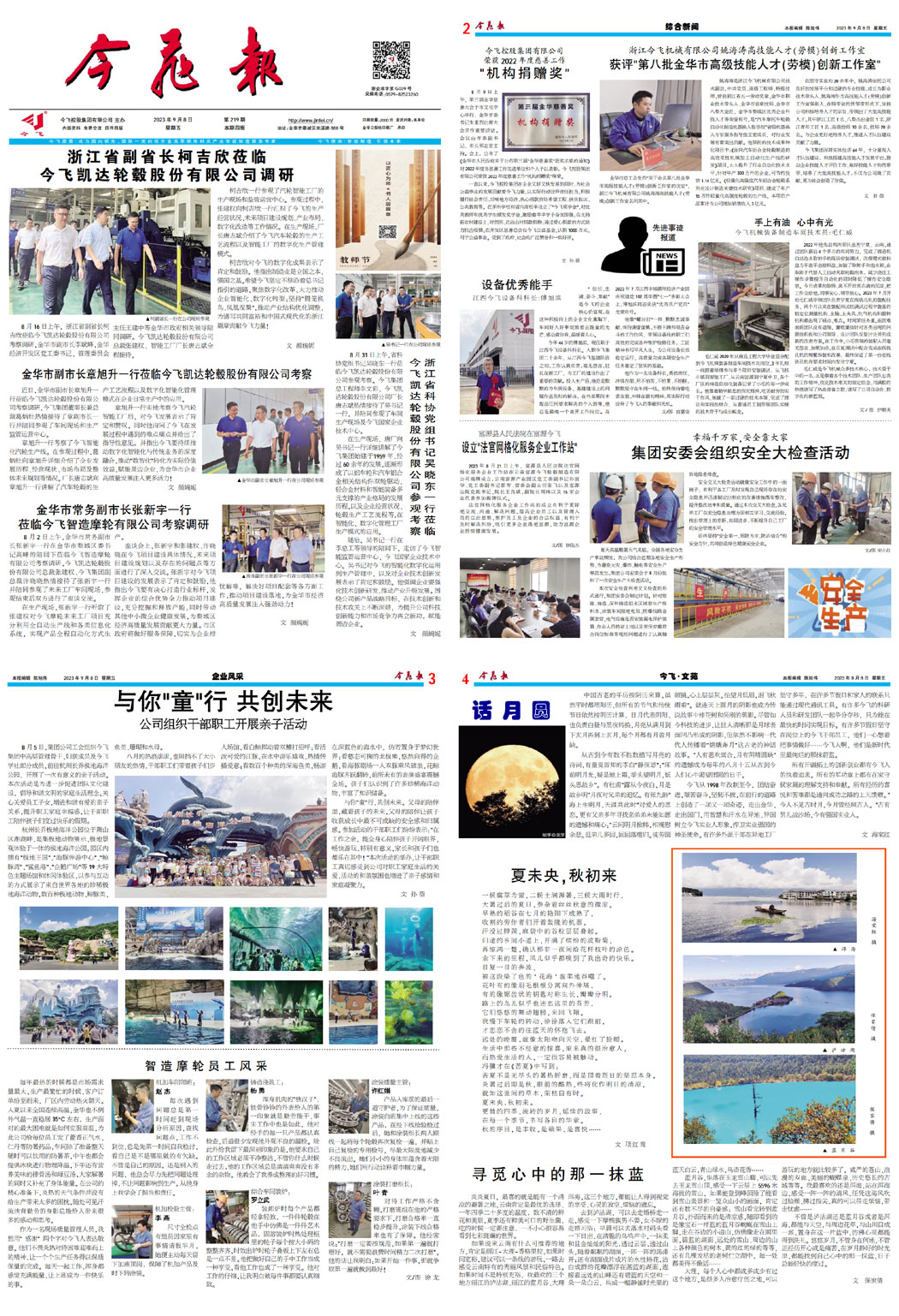 浙江省副省長柯吉欣蒞臨今飛凱達(dá)輪轂股份有限公司考察調(diào)研省科協(xié)黨組書記吳曉東一行蒞臨今飛凱達(dá)輪轂股份有限公司參觀考察金華市副市長章旭升一行蒞臨今飛凱達(dá)輪轂股份有限公司考察調(diào)研金華市常務(wù)副市長張新宇一行蒞臨今飛智造摩輪有限公司考察調(diào)研今飛控股集團(tuán)有限公司榮獲2022年度慈善工作“機(jī)構(gòu)捐贈(zèng)獎(jiǎng)”浙江今飛機(jī)械有限公司姚海濤高技能人才(勞模)創(chuàng)新工作室一一獲評(píng)“第八批金華市高級(jí)技能人才(勞模)創(chuàng)新工作室”設(shè)備優(yōu)秀能手一一江西今飛設(shè)備科科長:傅旭濱手上有油 心中有光一一今飛機(jī)械裝備制造車間技術(shù)員:毛仁威富源縣人民法院在富源今飛設(shè)立“法官網(wǎng)格化服務(wù)企業(yè)工作站”幸福千萬家,安全靠大家——集團(tuán)安委會(huì)組織安全大檢查活動(dòng)與你“童”行 共創(chuàng)未來——公司組織干部職工開展親子活動(dòng)智造摩輪員工風(fēng)采話月圓夏未央,秋初來尋覓心中的那一抹藍(lán)