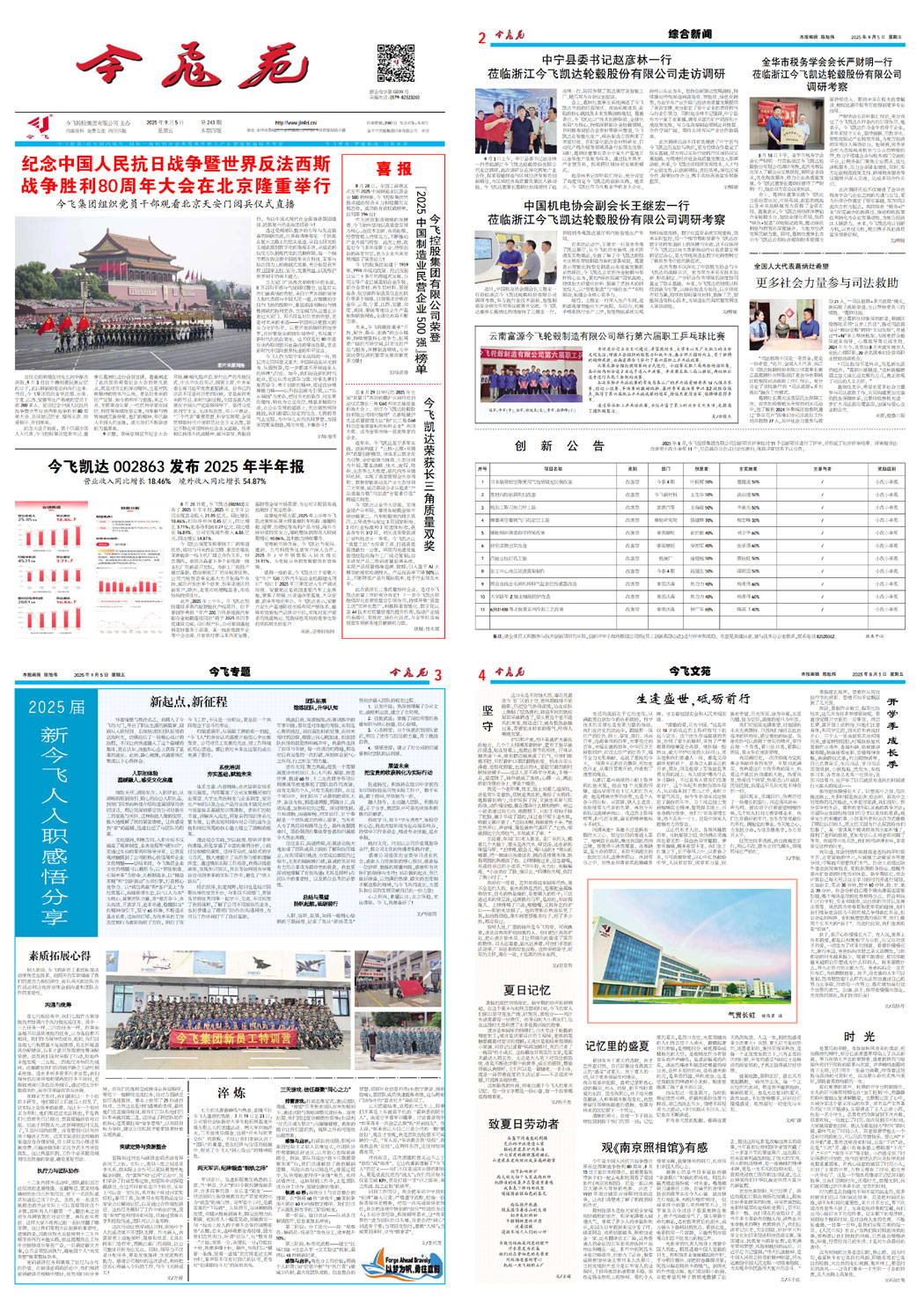 紀(jì)念中國(guó)人民抗日戰(zhàn)爭(zhēng)暨世界反法西斯戰(zhàn)爭(zhēng)勝利 80周年大會(huì)在北京隆重舉行——今飛集團(tuán)組織黨員干部觀看北京天安門(mén)閱兵儀式今飛控股集團(tuán)有限公司榮登 “2025中國(guó)制造業(yè)民營(yíng)企業(yè)500強(qiáng)”榜單今飛凱達(dá)榮獲長(zhǎng)三角質(zhì)量雙獎(jiǎng)今飛凱達(dá)002863發(fā)布2025年半年報(bào)——營(yíng)業(yè)收入同比增長(zhǎng)18.46% ,境外收入同比增長(zhǎng)54.87%全國(guó)人大代表葛炳灶希望更多社會(huì)力量參與司法救助云南富源今飛輪轂制造有限公司舉行第六屆職工乒乓球比賽創(chuàng) 新 公 告中寧縣委書(shū)記趙彥林一行蒞臨浙江今飛凱達(dá)輪轂股份有限公司走訪調(diào)研金華市稅務(wù)學(xué)會(huì)會(huì)長(zhǎng)嚴(yán)財(cái)明一行蒞臨浙江今飛凱達(dá)輪轂股份有限公司調(diào)研考察中國(guó)機(jī)電協(xié)會(huì)副會(huì)長(zhǎng)王繼宏一行蒞臨浙江今飛凱達(dá)輪轂股份有限公司調(diào)研考察新起點(diǎn),新征程素質(zhì)拓展心得淬煉開(kāi)學(xué)季 成長(zhǎng)季觀《南京照相館》有感時(shí) 光生逢盛世,砥礪前行堅(jiān)守記憶里的盛夏夏日記憶致夏日勞動(dòng)者